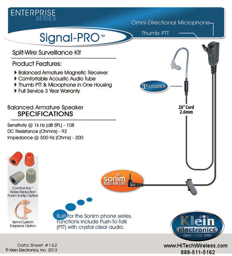 Signal Pro Split Wire Surveillance Earpiece for Sonim XP3 Phones